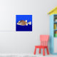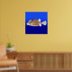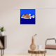 Vintage print of a Spotted Trunk Fish, set against a blue background. These tropical fish are found around coral reefs throughout the world.