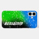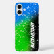 Personalise by adding a name or remove the text for this bright green, black, and blue spray paint style, custom name phone case.