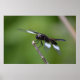 An un-altered photo of a black dragonfly with pale blue stripes on its wings that look like they were spray paineted on. Feel free to resize the image to fit your needs!