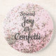 On this stylish coaster is various shades of confetti on a pink champagne pastel backdrop where in the centre is a pink square where you can customise it with a letter and name or keep it as is with the phrase "spread joy like confetti" creating an uplifting postive theme. Elegant chic girly vibes.