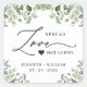 Spread Love Greenery Eucalyptus Wedding Sanitizer Square Sticker