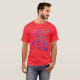 I give wanted to give this a 4 instead of a 5 because these Basic DARK T0shirts run unexpectedly SLIM or Narrow. Which is great if you do not have a potbelly, but I have a paunch. It isn't the shirt's fault that I've got a beer belly. The design and shirt itself is a quality cotton shirt. The color is more of a deep purple, but still a very pretty color. The Basic DARK T-shirts run a bit SLIMMER than the Basic Ts. The neck is a fraction narrower (or seems to be narrower) also. I'm a paunchy middle-aged woman and my neck is 12 inches (31cm) thick and the neckline fell about the same as in the photo of the man, and I had the desire to tug it a bit. So if you're a thick necked man or like loose shirts, be aware these are slimmer shirts. Once I get rid of my lockdown paunch it'll look great. The shirt washed well in cold water with no apparent bleeding. We don't have a dryer, so it hung dry. Did not shrink. Love the colors and the design. The design looks smaller on my shirt than it does on the model on-line. But still, it looks good on the shirt. The printing looks as it does on the model, just the size seems fractionally smaller. Washed garment in cold water, hung dry and design appeared unaffected.
