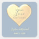 Simple, modern, elegant dusty blue wedding favour sticker with romantic quote: Spread Love Not Germs and gold heart, symbol of strong, endless love, warmth, richness and faith.