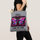 Make a striking statement with this uniquely designed tote bag featuring an AI-generated tattoo style butterfly in hot pink and plum purple, set against a dramatic jet black background and framed with modern lines and rectangles. The vibrant butterfly artwork pops beautifully on a sophisticated silver grey background, making this tote equal parts edgy and elegant. What makes it even more special? You can personalise it with your name or the name of a loved one, turning it into a truly one-of-a-kind gift that’s both fashionable and meaningful. The reverse side of the tote showcases a timeless vintage lace pattern on the same silver grey background—offering a softer, romantic contrast to the bold front design. Whether you're headed to work, the farmer’s market, or just out and about, this tote is sure to turn heads and start conversations.