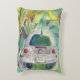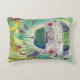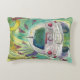 The cushion is small to medium sized. It can be washed. It is well constructed. The material used is pleasant and feels decent quality. It has a very slight plush feel which is good. It is well labelled and its care clearly stated. Theres nothing not to like about it. All in all a good item. The deduction of one star overall is due to long delays in delivery to the UK. It's not clear if this was due to Zazzle or somewhere else in the chain as I did not receive status updates of dispatch or progress. I cannot comment anymore on that other than to say that was our experience but it may not be the same for you. The printing was surprisingly close to what we were expecting. Its an art piece and on material so its hard to assess the precision of printing but it seems close to the original. The soft lines are reproductions of the original. The colour is a fair reflection of the painting. This was printed in the US and it looks like US quality. No issues.