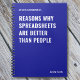 Personalise the name to be printed on the bottom of "Reasons Why Spreadsheets Are Better Than People" cover.