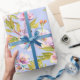 Sprigs of flowering apple or cherry trees on the b wrapping paper