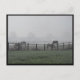 Horses grazing on a foggy morning.