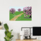 Beautiful spring image of flowering trees, on a  decorative vector art poster.