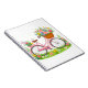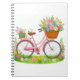 This charming and vibrant design features a cute pink bicycle overflowing with colourful flowers in its front basket and a smaller basket on the back. A sweet little bird is perched on the bicycle seat, adding to the whimsical scene. The bike is situated in a lush green meadow dotted with various cheerful blossoms, evoking feelings of spring, nature, and leisurely rides. Perfect for adding a touch of joy and freshness to any product or project.