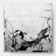 Elegant ,whimsical ,colourful floral design with a cute spring bird on the branches of a flowering tree,blooms,blossoms in black white ,grey colours created with digital re-elaboration of an antique oriental miniature.