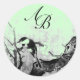 SPRING BIRD AND FLOWER TREE MONOGRAM Black Green Classic Round Sticker