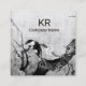 SPRING BIRD AND FLOWER TREE MONOGRAM Black White Square Business Card