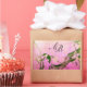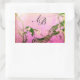 SPRING BIRD AND FLOWER TREE MONOGRAM Pink Fuchsia Rectangular Sticker