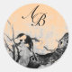 SPRING BIRD AND FLOWER TREE MONOGRAM Pink Orange Classic Round Sticker