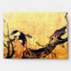 Elegant ,whimsical ,colourful floral design with a cute spring bird on the branches of a flowering tree,blooms,blossoms in yellow ,brown,white colours created with digital re-elaboration of an antique oriental miniature.
