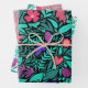 This pretty and feminine hand-drawn pattern is perfect for the spring and summer season. It features a coral pink, neon pink, carmine-pink, violet purple, plum purple, pine green, teal green, and bright turquoise green flowers and leaves illustration pattern on a black background. It's a one-of-a-kind and original piece of art with no repeated leaves or blooms. It's girly, artsy, beautiful, fresh, and modern.