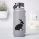 This vinyl sticker has a spring time bunny rabbit in a sitting position with tall ears done in black silhouette with a ring of flowers in multiple colours around its neck and a pink eye.