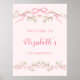 Cute 1st birthday welcome sign (poster) features a pink blossom border adorned with bows and butterflies.