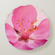 Beautiful pink flower blossom photo on a round cushion.
