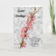 My original digital artwork is featured on this pretty Easter cad, consisting of a vintage grey toned pattern in the background with a Spring Flowering tree branch in front, showing new life. The Words 'Easter Greetings!' is on the front as well as bible Scripture from Romans 5:1. The inside states "Rejoice in the Lord and have a wonderful Easter celebration! Happy Easter!" for a nice and heartfelt greeting.