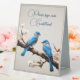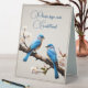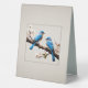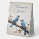 Create a charming sign for your guestbook table with a set of Spring Bluebirds Wedding Table Tent Sign. Sign design features a pair of bluebirds resting on a wooden branch with spring blooms against a paper textured background. Additional wedding stationery available with this design as well.