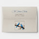 Send your wedding invites to guests in this Spring Bluebirds Wedding Envelope. Envelope design features a pair of bluebirds resting on a wooden branch with spring blooms against a paper textured background. Inside of envelope features a wooden rustic background. Additional wedding stationery available with this design.