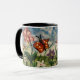 Spring Blues and Orange Children's Artwork Mug. A few more months left before summer break, as a class we decided to explore Spring through painting about blooming flowers and Butterflies, we enjoyed mixing colours and planning where each flower and butterfly would be placed, I hope you enjoy this design!