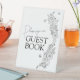 Stylised spring floral line art please sign our guest book table sign. Simple line art featuring, spring blossom, tendrils and butterflies along the side. A simple monotone black and white design to personalise with your words if required. Matching signs and other wedding items and colour options are available and or can be created on request. © Original hand drawing and design by Sarah Trett for www.mylittleedenweddings.com on Zazzle.