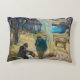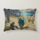 The cushion is small to medium sized. It can be washed. It is well constructed. The material used is pleasant and feels decent quality. It has a very slight plush feel which is good. It is well labelled and its care clearly stated. Theres nothing not to like about it. All in all a good item. The deduction of one star overall is due to long delays in delivery to the UK. It's not clear if this was due to Zazzle or somewhere else in the chain as I did not receive status updates of dispatch or progress. I cannot comment anymore on that other than to say that was our experience but it may not be the same for you. The printing was surprisingly close to what we were expecting. Its an art piece and on material so its hard to assess the precision of printing but it seems close to the original. The soft lines are reproductions of the original. The colour is a fair reflection of the painting. This was printed in the US and it looks like US quality. No issues.