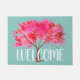 Welcome mat with cute cherry blossom original art watercolor painting with a Spring theme