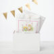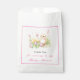 Pretty baby shower favour bag with an adorable chick and pink and yellow tulips. Perfect for a spring or summer baby shower. The words can be changed to suit your own details or requirements