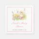 Pretty baby shower napkins with an adorable chick and pink and yellow tulips. Perfect for a spring or summer baby shower. The words can be changed to suit your own details or requirements