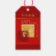 Red Chinese Tiger paper-cut on Asian painting with greeting in English in front (gold lettering and drop shadow not customisable) Design on red gift tag with greeting in Chinese (front) and text to personalise in back. You can easily change background colour by clicking the customise button. Matching greeting card, holiday postcard and other craft products. Perfect for Chinese New Year of The Tiger 2022.
