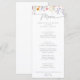 This spring colorful wildflower dinner menu card is perfect for a rustic wedding. The design features an elegant calligraphy script, which reads wedding in muted gray, hand-painted watercolor purple, violet, burgundy, red, pink, blush, yellow wildflowers, green leaves assembled into a seamless floral patterns.