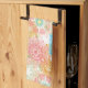 Spring-colored flowers are blue, green, pink, and blue kitchen towel.
