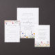 This spring colourful wildflower dinner menu card is perfect for a rustic wedding. The design features an elegant calligraphy script, which reads wedding in muted grey, hand-painted watercolor purple, violet, burgundy, red, pink, blush, yellow wildflowers, green leaves assembled into a seamless floral patterns.