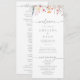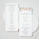 This spring colourful wildflower wedding program is perfect for a rustic wedding. The design features an elegant calligraphy script, which reads wedding in muted grey, hand-painted watercolor purple, violet, burgundy, red, pink, blush, yellow wildflowers, green leaves assembled into a seamless floral patterns.