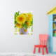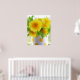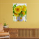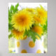 A cheerful bouquet of dandelions in a yellow polkadot vase