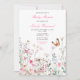 Pretty baby shower invitation with wildflowers in pink, and cute butterflies. Perfect for a spring or summer baby shower. The words can be changed to suit your own details or requirements