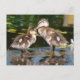 A pair of downy fuzzy baby duckling nuzzle their beaks together in a shallow pond in early spring. Colour Photograph taken at a small community pond park where people come to see the ducks in Chilliwack, British Columbia