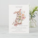 Capturing the essence of the season, our invitation features a charming watercolor illustration of a bunny clutching a blooming bouquet of spring flowers. The delicate pink hues, soft yellows and spring green, combine with the intricate apricot and peach floral details, adding a touch of springtime magic, while the gentle bunny infuses a sense of joy and nurturance.