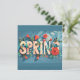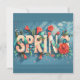 A vibrant Spring Holiday Card surrounded by various flowers colourful lettering spelling "Spring".