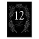 Hand-drawn Spring fleur de lis style elegant framed wedding number with styled spring blooms, leaves, tendrils and little butterflies. In simple classic black with white lettering and drawing, personalise with your own names and monogram initials and table numbers. Each number required has to be added to the cart one at a time. Other colours and matching items are available or can be created by request. © Original hand drawing and design by Sarah Trett for www.mylittleedenweddings.com on Zazzle.