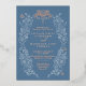 Hand-drawn Spring fleur de lis style elegant framed wedding invitation with styled spring blooms, leaves, tendrils and little butterflies. In grey blue, personalise with your own wedding details and monogram initials up the top. Other colours and matching items are available or can be created by request. © Original hand drawing and design by Sarah Trett for www.mylittleedenweddings.com on Zazzle.