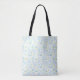 Tote bag with bright, cheerful spring bubble pattern in blue and green hues.