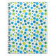 Spiral notebook with bright, cheerful spring dots pattern in blue and green hues.