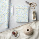 Wrapping paper with bright, cheerful spring flower doodle pattern in blue and green hues.