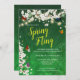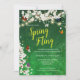 Welcome spring with this invitation featuring white flowers blooming on branches with butterflies, ladybugs, and bees flitting about. The background is a green ombre watercolor. Perfect for an outdoor or garden-themed bridal shower, engagement party, birthday, or special luncheon. Available with matching products.
