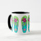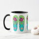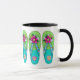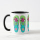 Cute rows of brightly coloured and flower inspired flip flops on a coffee mug.